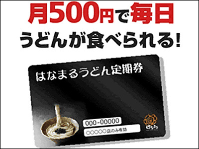 今回のうどん定期券は一日一回の来店で105円の割引ということなので、かけうどんの小を頼めば無料となる。月額500円ということなので、週に1度ははなまる!って人には信じられないくらい安い感じがするのであるが、僕にはかけうどん小だけを頼む勇気は決してない。いろいろと頼んでしまうだろう。そして、幾ら安いからといって、この定期券で毎日かけうどんを食い続けるというのは、お財布には優しいかもしれないが、栄養のバランス、心の健全さを考えると少々歪んでいることを証明してしまうのではないかと思っている。