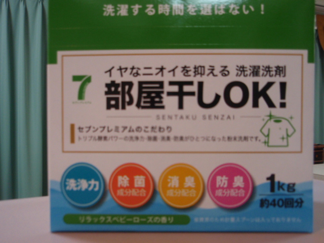 1キログラム入っていて部屋干しOK。部屋で干してもヘンテコな匂いにならない商品。なかなか香りもいいです。正直いって洗剤の品質はイメージしかない。パッケージを見ると酵素パワー(トップみたいですね)でトリプルで洗浄力、除菌、消臭、防臭の成分が入っているとのこと。無リンはもちろん日本製。そしてエコには気を使っている。先ずは外箱は再生紙で、中をあけるとダンボールみたいなもので強化しているだけ。さらに、計量スプーンが入っていない。毎回捨てているのが嫌だなあと思っていたので、ここの部分が一番気に入りました。洗剤の計量スプーンとブルガリアヨーグルトの砂糖はホントに要らないよなと思っているので(笑)。そして、気になる価格はいつでも198円