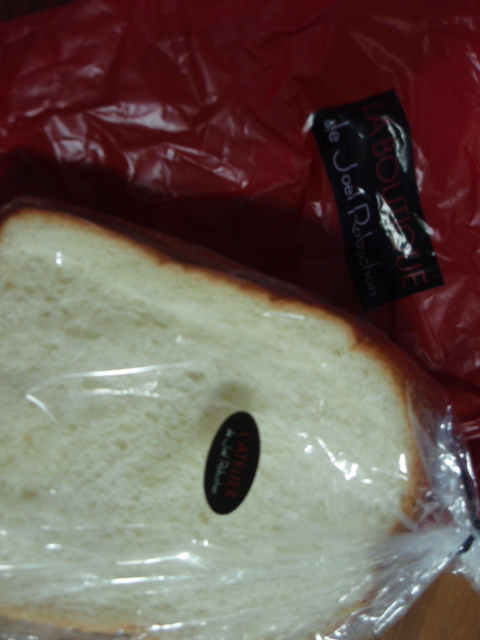 確か3枚入り。一斤で390円。写真は半分のもので190円くらいだった。この豊潤でシンプルな美味しさ。内部の湿り気とネバネバ感に、外側の適度な堅さ。当然この店のバケットも相当美味しいのである。六本木や恵比寿などジョエルロブションがある場所にいくと必ず寄るし、これから誰かと会うとなると、お土産に買って行く逸品である。お試しあれ!世界最高峰のそれががある。
