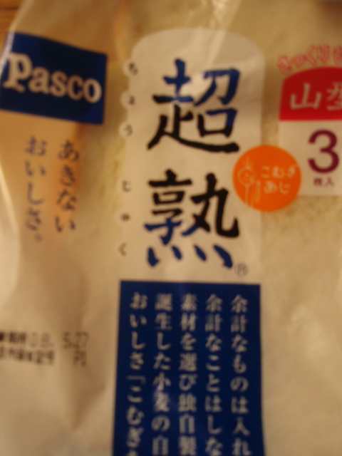 この味について食パンの袋にはこう書いてある。「超熟製法」…小麦粉を熱湯でアルファ化?(これは何のことか分からない)し低温で長時間じっくり熟成させて焼きあげる独自の湯種製法。これは、ベーカリーに圧されて製パン業界の大反攻が始まったのかと思い、よその会社のフジパンとか山崎なんかも試した見た。しかし…。パスコの超熟だけが圧倒的に美味しいのである。よそのメーカーでも、××パンなどと言っていかにも上手そうなネーミングだけしているものもあるが、見かけ倒れ。全然ダメ。このパスコの『超熟』。スーパーで最も安いときには100円くらいで売られることもある(先着何名とかなので買えたことはないが…)。ベーカリーでの300円くらいの食パンに負けないどころかそれ以上の味なのである。ぜひ一度お試しあれ!